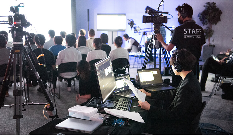- 映像合成、スイッチング、チャット対応など、会場の臨場感を伝える配信技術